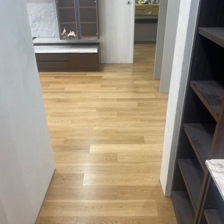 พื้นไม้เอ็นจิเนียร์ Oak สี Nature สีออกโทนเหลืองอ่อน ช่วยปรับ mood บ้านให้ดู minimal มากยิ่งขึ้น และด้วยความที่เป็นสีธรรมชาติทำให้ พื้นไม้สีนี้ยังดูเข้าและกลมกลืนกับทุก style การแต่งบ้านอีกด้วย